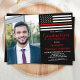 Celebre a sua formatura e convide amigos e familiares para a sua festa de formatura de bombeiros com este convite para a graduação do Thin Red Line Firefighter - design de bandeira americana em cores de bandeira do bombeiro, design angustiado. Personalize com nome, local de endereço e detalhes de rsvp. Este convite para a graduação do bombeiro pode ser usado para a aposentadoria do bombeiro, simplesmente mude o texto ao personalizar.Veja nossa coleção de presentes, favoritos para festas e suprimentos para a graduação do bombeiro. COPYRIGHT © 2020 Judy Burrows, Black Dog Art - Todos Os Direitos Reservados. Convite de Linha Vermelha fina de Foto de Bombeiro Festa de formatura