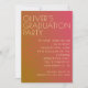 Este convite para a festa de formatura apresenta um fundo vibrante, inspirado em ondas de calor, com cores quentes misturando-se de laranja-ouro a vermelho nojento, capturando a essência de um dia quente de verão. A fonte ousada e moderna se destaca em letras grandes, garantindo que o evento detalhe a pop contra o gradiente brilhante, semelhante a onda. Acentos minimalistas como um copo de martini ou fatias de citrinos acrescentam um toque divertido sem sobrecarregar o design, dando-lhe uma vibração viva, de verão, perfeita para uma noite festiva.