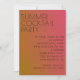 Este convite de festas de coquetel apresenta um fundo vibrante e inspirado em ondas de calor, com cores quentes se misturando de laranja ouro a vermelho feroz, capturando a essência de um dia quente de verão. A fonte ousada e moderna se destaca em letras grandes, garantindo que o evento detalhe a pop contra o gradiente brilhante, semelhante a onda. Acentos minimalistas como um copo de martini ou fatias de citrinos acrescentam um toque divertido sem sobrecarregar o design, dando-lhe uma vibração viva, de verão, perfeita para uma noite festiva.