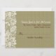 Tons elegantes de bege natural com aparência de burlap de linho e desenho de renda floral branca vintage, cartão de RSVP de casamento.