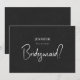 Minimalista caprichoso moderno, tipografia de texto branco personalizável, elegante, você será minha dama de honra? A textura de linho preto impresso adiciona um toque de sensação orgânica de elegância clássica. Outras cores estão disponíveis.