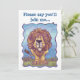 Os Convidados de Aniversário Personalizados do Leão de Festa Animal, Cartões, Presentes, Favoritos para festas e muito mais são para o seu lado divertido, com a nossa arte original de um leão branco parado nas gramíneas verdes da savana, com um céu azul texturizado e uma bela fronteira roxa e ondulada. Pintado pelo talentoso artista infantil Traci Van Wagoner, o nosso divertido animal safari, o equipamento do partido temido, é perfeito para amantes de leões de todas as idades. Em muitas das nossas engrenagens fanáticas de animais selvagens, vocês verão o rei fofo da selva chegando e indo com este trabalho de arte divertido da cabeça do leão giro na frente e a cauda do leão africano nas costas. Junte-se à Parada Animal e jogue um balde cheio de animais com nossas cabeças divertidas e rabos de festa de aniversário de leão. Para começar sua festa, envie a todos os amigos do seu filho um convite que eles não podem recusar. Divirta-se!
