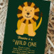 Convites Lion Wild One First Birthday Dourado e Verde