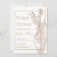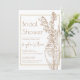 Um convite de chá de noiva em estilo suave e elegante, com uma ilustração gráfica encantadora de lírios do vale, tons pastéis.