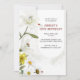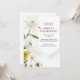 Belo convite de aniversário com lírios, daffodilos amarelos e margaridas. Damybugs ficam em pétalas de lírio. Elegante e simples