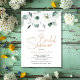 O chá de panela floral moderno elegante apresenta um buquê de lisiancia branca de cor aquosa, suculenta em tons de branco e marfim, com folhas botânicas verdes e peludas e eucalipto. Por favor, encontre mais designs e variações na minha loja de momentos de celebração.