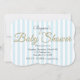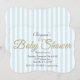 Convites Listrados Azuis para CHUVEIRO DE BEBÊ com Brilho Dourado.