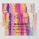 Convite de Baby Shower com um design de fundo abstrato. Listras vibrantes em cores fortes e pastéis. Cores rosa, azul, roxo e amarelo combinadas com brilho dourado falso sobreposto.
