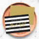 Este cartão chic "Você Será Minha Dama de Flores" apresenta as palavras "Dama de Flores" em uma fonte trendy com efeito de pincel em folha de ouro falsa contra um fundo de listras pretas e brancas. O cartão tem uma cor dourada na parte de trás. Confira os itens de Chá de Noiva / Casamento correspondentes aqui https://www.zazzle.com/collections/119250194970828530?rf=238364477188679314