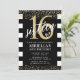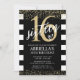 Convites de Listras Pretas e Brancas com Dourado são perfeitos para qualquer aniversário! Altere a idade para homenagear o aniversariante no seu dia especial.