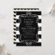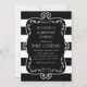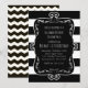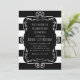 Convites de festa caprichosa prateada com listras pretas e brancas.