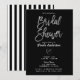 Convites Listras Pretas e Brancas Prata Chique Chá de Bebê