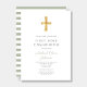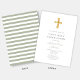 Convite de Listras Verde Sage Modernas Cruz Primeira Comunhão.