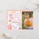 O pequeno Boo está a fazer dois convites de aniversário para fantasmas de Halloween. Foto rosa do "Little Boo Second Birthday Invitation" com foto do seu filho. Possui um fantasma de aquarela fofo, abóbora, milho doce, aranha, coração e morcego e o número 2.