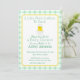 A little chick and green check border card featuring green type fonts to compliment the fun, informal and whimsical design. Timeless !