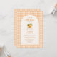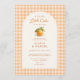 Little Cutie orange gingham all in one baby shower invitation featuring sweet citrus accents and a classic gingham pattern. Designed in a coordinated front and back layout for a polished, cohesive look. Perfect for summer, citrus themed, and gender neutral baby showers. Editable text for easy personalization. Print ready layout.