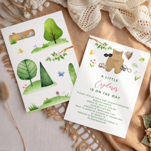 Convites Little Explorer Woodland Forest Hiking Baby Shower