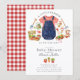 The classic red gingham backing adds a timeless country touch, while the soft watercolor illustrations create a warm and welcoming feel. Easily personalize with your event details for a darling rustic baby shower invitation your guests will love.