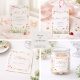 Soft pink pinstripes paired with delicate hand-painted ladybugs, wildflowers, and lush greenery create a charming garden-inspired design. Gentle florals frame the layout, evoking a light, whimsical feel with storybook elegance. The pastel color palette and nature-inspired details bring warmth and sweetness, making this invitation perfect for a joyful celebration welcoming a little one.