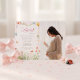 Soft pink pinstripes paired with delicate hand-painted ladybugs, wildflowers, and lush greenery create a charming garden-inspired design. Gentle florals frame the layout, evoking a light, whimsical feel with storybook elegance. The pastel color palette and nature-inspired details bring warmth and sweetness, making this invitation perfect for a joyful celebration welcoming a little one.
