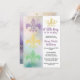Perfect for a Mardi Gras–themed baby shower, this invitation is ideal for hosts looking for something festive yet refined. The gentle color palette and whimsical royal details make it especially fitting for a baby boy shower while remaining elegant and timeless. Personalize all event details to create a one-of-a-kind invitation your guests will love.
