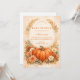 A warm and cozy fall baby shower design featuring a hand-painted watercolor pumpkin surrounded by soft peach florals, golden leaves, and delicate autumn accents. The earthy orange palette and elegant arch layout create a refined harvest aesthetic that feels timeless and inviting. Perfect for an autumn celebration, a neutral fall theme, or a charming “Little Pumpkin” baby shower with rustic floral details.