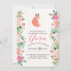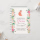 Uma doce raposa vermelha olha sobre o ombro dele neste belo convite inspirado na natureza. Bordas de peônias, rosas, flores silvestres, bagas e florestas verdes correm pelas bordas com o texto anunciando seu Chá de fraldas no meio. Um design simples, delicadamente renderizado em lindas cores naturais de verde, rosa, pêssego, verde e laranja. Listras de aquarela nas cinzas no verso.