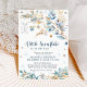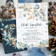 elebrate the mom-to-be with this elegant “A Little Snowflake is on the Way” winter baby shower invitation! Delicate watercolor snowflakes drift across an icy blue and gold foliage garland, adorned with a tiny knit hat and mittens for the perfect cozy, gender-neutral touch. Ideal for December or January due dates, this neutral design features soft blues, shimmering gold accents, and a snowy speckled background.