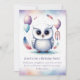 Celebrate with this adorable little owl birthday invitation! Featuring a soft watercolor snowy owl with pastel balloons and boho feathers, this charming woodland design is perfect for baby showers, first birthdays, or forest-themed celebrations.