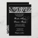 Esta design com sua impressão em zebra branca e preta saindo de trás de um fundo preto mistura elementos contemporâneos e clássicos, e faz um convite de casamento elegante. Este design é apresentado atualmente em um papel de linha para um toque elegante. Também recomendo o papel metálico calcado para um xícara festivo e brilho!