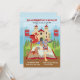 Celebre o aniversário mágico do seu filho com este convite colorido! Ele apresenta um cavaleiro e seu belo cavalo, um dragão e um castelo medieval sobre uma colina. Mais importante, há um livro de histórias de aventura provavelmente cheio de histórias medievais sobre cavaleiros e dragões. Este convite de aniversário para meninos é facilmente personalizado para o seu evento, adicionando seus detalhes. Na frente, ao fundo, há uma paisagem azul suave com uma silhueta de castelo e um escudo medieval com um dragão e espadas. Ótimo para aniversários infantis com temas de Cavaleiros e Dragões, contos de fadas e livros!