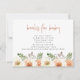 Este livro para cartão de bebê contém florais laranja bonitos e uma fonte rustica de script manuscrito. Edite a maioria dos textos para atender às necessidades do seu evento. Este chá de fraldas é perfeito para o seu evento temático do outono.