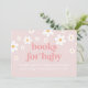 Inspirado no retro, margarida e rosa bebê shower Paz Amor e Bebê Livros para cartão de bebê com margaridas estilo anos 70 e fontes e cores boho.
