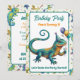 Cute boy's birthday party invitations with a lizard theme! Blue, turquoise, orang and yellow hues with cute lizards climbing up the invitations.