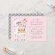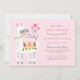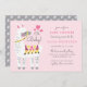 Um convite de chá de fraldas de menina branca apresentando uma lama com as palavras "oh baby" em uma letra de escrita bonita com corações cor-de-rosa à sua volta. Seus detalhes são mostrados com uma tipografia escrita à mão contra um fundo cor-de-rosa pastel.