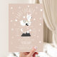 Ilustração de uma lama bebê cercada por estrelas com montanhas. O fundo é rosa.