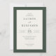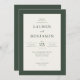 This elegant wedding invitation features a clean and sophisticated design with a minimalist aesthetic. The layout is centered around simple, refined typography that exudes timeless charm, complemented by a subtle color palette of soft white and muted green borders. Perfect for a classic or modern wedding celebration, the mood conveyed is one of understated elegance and grace. Ideal for couples who appreciate simplicity and sophistication, this invitation sets an inviting tone for their special day.