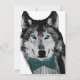 Um lobo bonito com olhos azuis e arco tempo faz um convite excelente para a maioria das ocasiões.