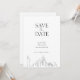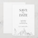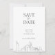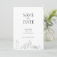 Salve a data moderno minimalista com desenho de cidade e fontes elegantes sobre um fundo branco, que contrasta maravilhosamente com preto escuro.