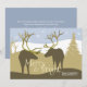 Mude a cor deste cartão de férias da empresa de renas brilhante e feliz para os valores hexadecimais da sua própria empresa! O trabalho de arte branco, verde escuro e azul-cinza nesta placa pode ser alterado para qualquer cor, enquanto os cilindros de folha de ouro têm outros filtros para escolher. Carregue facilmente o seu logotipo de qualquer cor e design esta placa à sua volta. Mensagem branca no verso com qualquer cor de fundo que você escolher.