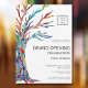 Convide os seus clientes para a celebração do Business Grand Open com este convite exclusivo. Apresenta uma árvore de mosaico colorida. Facilmente personalizável com detalhes e logotipo de eventos. Mosaico original © Michele Davies.
