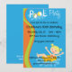 Este convite de aniversário de piscinas bonitinho apresenta uma menina loira a saltar num tubo interno sobre um fundo de água azul. Completamente personalizável.