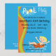 Este convite de aniversário de piscinas bonitinho apresenta um menino com cabelos loiros saltando em um tubo interno sobre um fundo de água azul. Completamente personalizável.