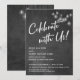 Nesta bonita composição temática de casamento eu usei uma fonte de caligrafia moderna e elegante para criar uma sobreposição de tipografia gráfica branca com a frase "Celebre conosco!". Em ambos os lados, o fundo foi coberto com uma imagem que retrata uma lousa texturizada. Sobrepondo isso há um conjunto de luzes de Edison vintage, redondas e brancas. Preencha os espaços em branco do modelo com seus detalhes para personalizar o design. Todas as camadas foram adicionadas separadamente e deixadas destrancadas para lhe dar o máximo de controle de design.