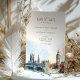 Celebre o seu casamento com este belo cartão "Salve a Data" com uma ilustração em aquarela dos marcos icônicos de Londres, incluindo a Torre Bridge e o Big Ben. A frente mostra uma vista serena da Ponte Torre sob um céu pastel, enquanto a parte de trás destaca Big Ben e as Casas do Parlamento com tons suaves de azul, cinzas e toques de âmbar quente. Este cartão combina elegância clássica com encanto artístico, perfeito para casais planejando um casamento de destino no coração de Londres. A mistura de tipografia moderna e de script adiciona sofisticação, fazer uma escolha eterno para seu anúncio especial.