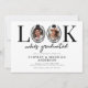 Celebrate two milestones in modern style with this quirky joint graduation party invitation. Featuring a clean white background and the fun saying “look who’s graduated”, the design cleverly uses the “O” letters as photo frames, each accented with a graduation cap for a playful yet elegant touch—perfect for showcasing both graduates.