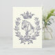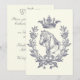 Retrato de cavalo com louros e coroa real em azul em pó sobre fundo branco de marfim. O texto no verso é facilmente personalizado. Convite perfeito para aniversários, licenciatura, vencedores de competições, solteiros, casamentos, festas de derby ou qualquer outra ocasião para amantes de cavalos, horrores e competidores desportivos equestres. Disponível em maneiras monocromáticas clássicas. O cavalo é um animal majestoso que encarna o poder espiritual da independência, liberdade, nobreza, resistência, confiança, triunfo, heroísmo, força, coragem e competição.