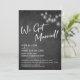 Nesta bonita composição com tema de casamento, eu usei uma fonte elegante de caligrafia moderna para criar uma sobreposição de tipografia gráfica branca com a frase "Nós Casamos!". Em ambos os lados, o fundo foi coberto com uma imagem que retrata uma lousa texturizada. Sobreposta a isso, há um conjunto de luzes Edison vintage redondas e brancas. Preencha os espaços em branco do modelo com seus detalhes para personalizar o design. Todas as camadas foram adicionadas separadamente e deixadas destrancadas para lhe dar o máximo controle de design. //