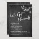 Neste lindo design temático de casamento, usei uma fonte de caligrafia elegante e moderna para criar uma sobreposição de tipografia gráfica branca que diz "Nós Casamos!". Em ambos os lados, o fundo foi coberto com uma imagem que retrata um quadro-negro texturizado. Sobreposto a isso, há um conjunto de luzes Edison vintage redondas e brancas. Preencha os espaços em branco do modelo com seus detalhes para personalizar o design. Todas as camadas foram adicionadas separadamente e deixadas desbloqueadas para lhe dar o máximo controle de design. //