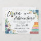 Convites Love Adventure Suitcase Blue Floral Chá de panela